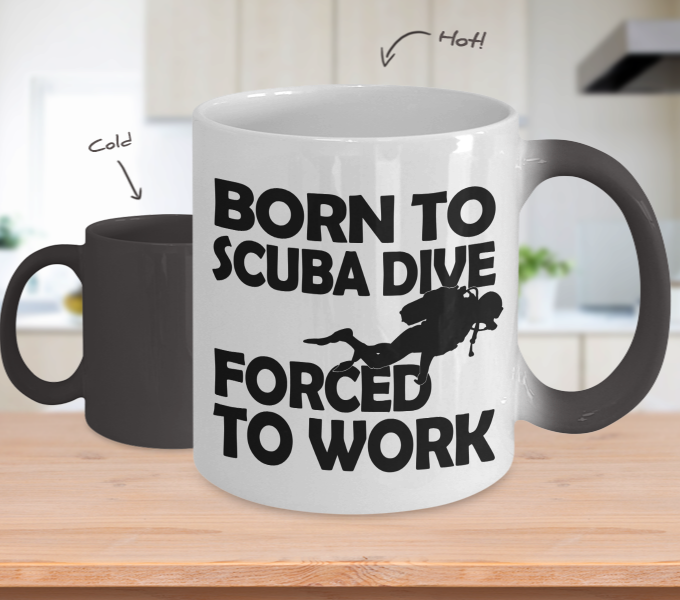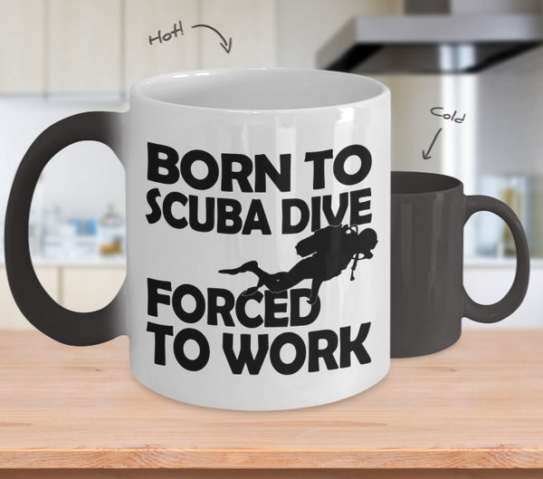 Color Changing Mug Hobbies Theme Born To Scuba Dive Force To Work