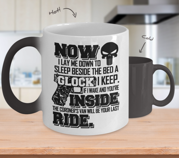 Color Changing Mug Hunting Theme Now I Lay Me Dowwn To Sleep Beside The Bed A Glock I Keep