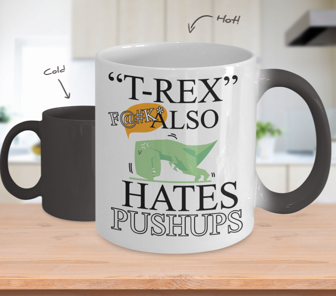 Color Changing Mug Quotes Theme T-REX Also Hates Pushups