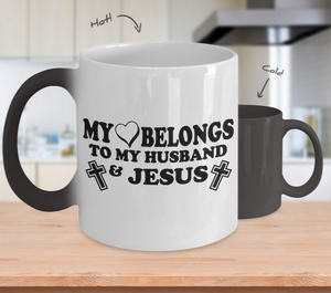 Color Changing Mug Religious Theme My Love Belongs To My Husband & Jesus