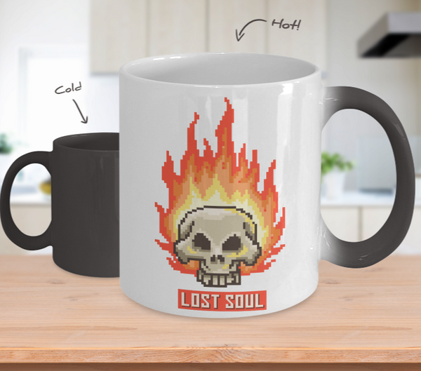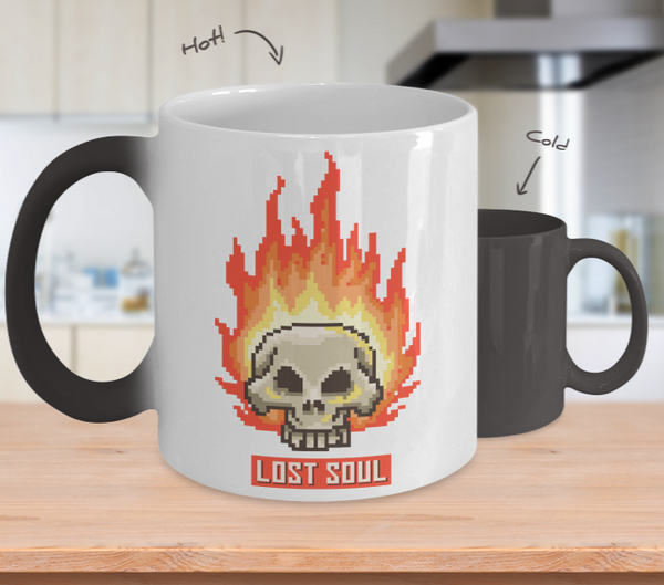 Color Changing Mug Retro 80s 90s Nostalgic Burning Skull Lost Soul Pixel Art