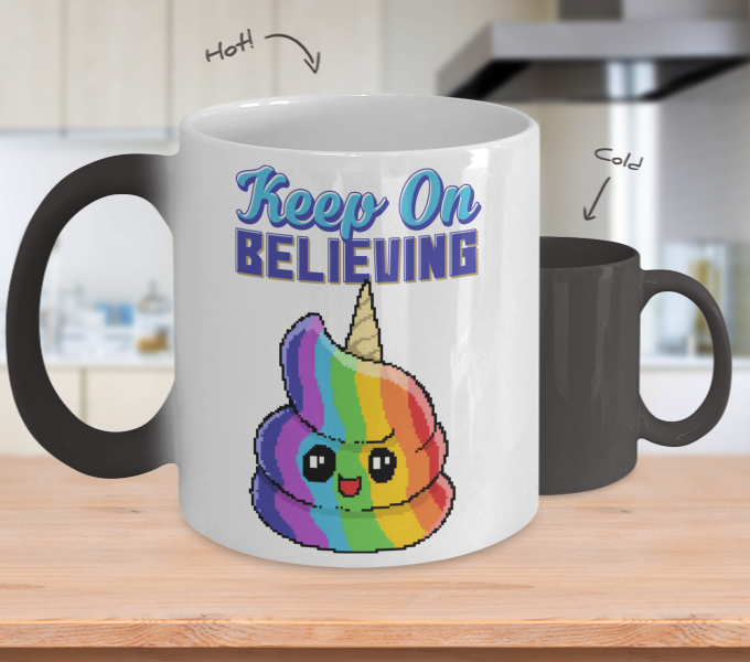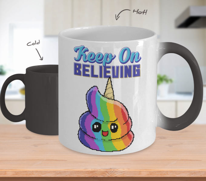 Color Changing Mug Retro 80s 90s Nostalgic Keep On Believing Unicorn Pixel Art