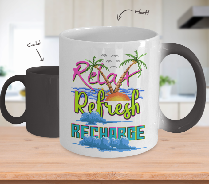 Color Changing Mug Retro 80s 90s Nostalgic Relax Refresh Recharge