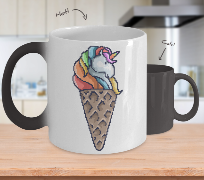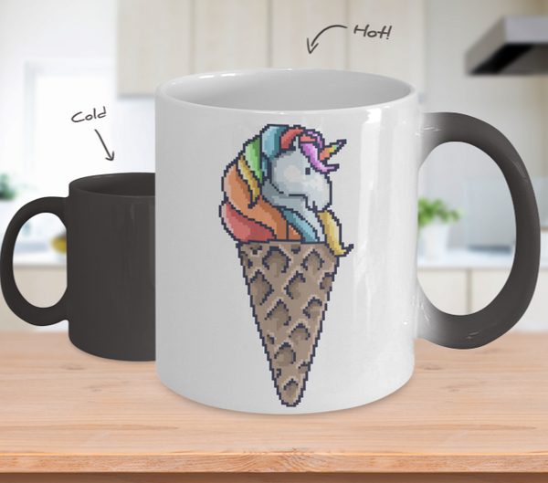 Color Changing Mug Retro 80s 90s Nostalgic Unicorn cone