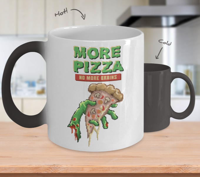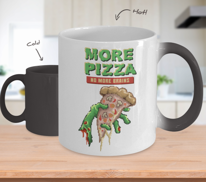 Color Changing Mug Retro 80s 90s Nostalgic Zombie Pizza