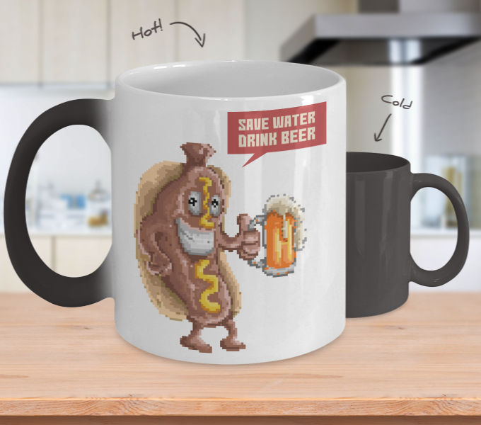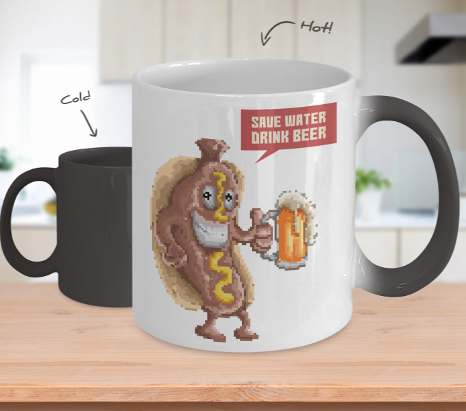 Color Changing Mug Retro 80s 90s Save Water Drink Beer