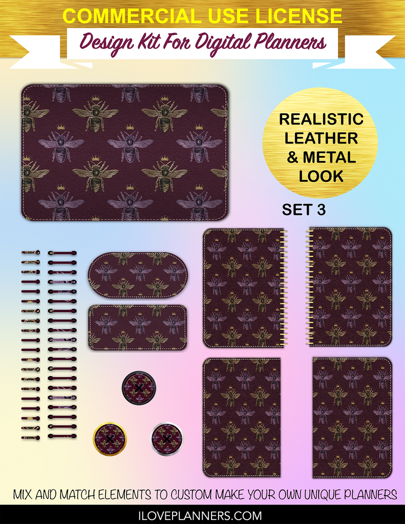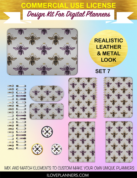 Queen Bee Cover Kit for Digital Planners, Spirals, Coils, Customize Your Digital Planners, Commercial Use OK, Digital Planners, Digital Journals, Compatible for PC, Mac, Canva. #17