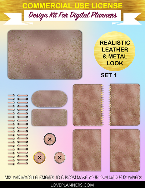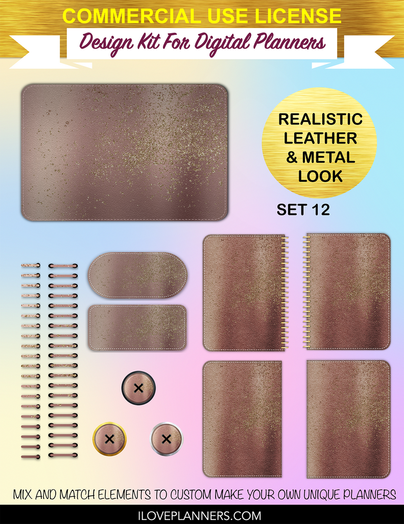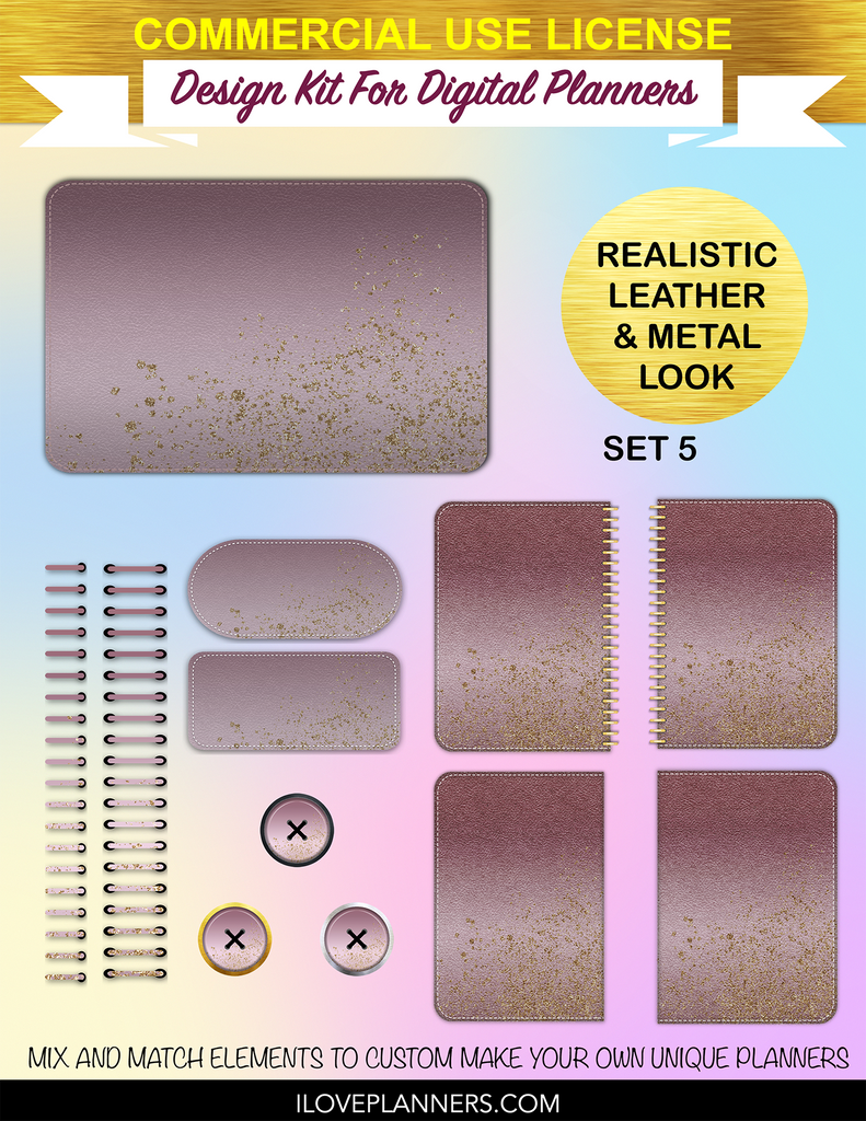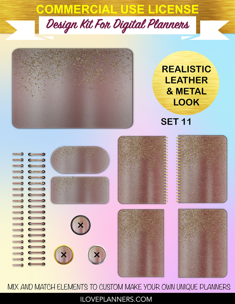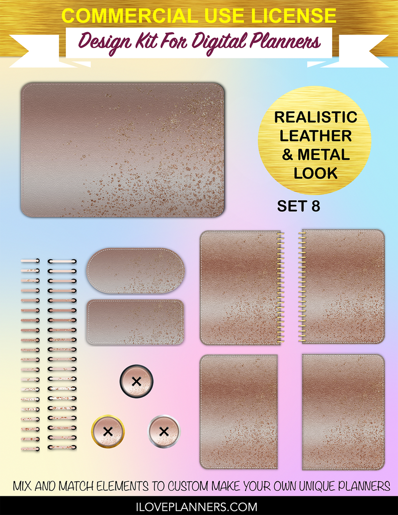 Rose and Gold Glitter Cover Kit for Digital Planners, Spirals, Coils, Customize Your Digital Planners, Commercial Use OK, Digital Planners, Digital Journals, Compatible for PC, Mac, Canva. #19