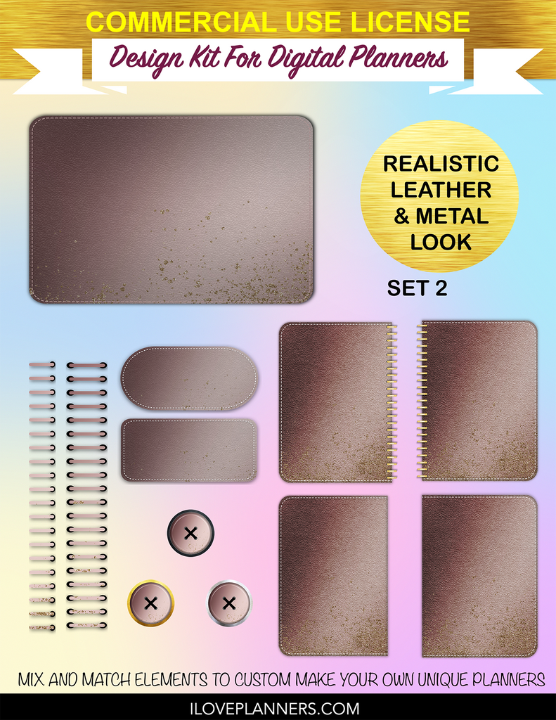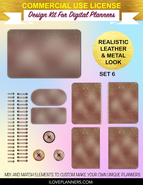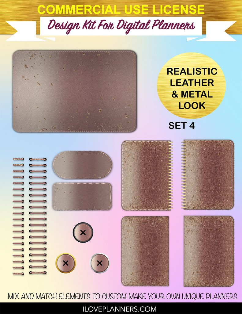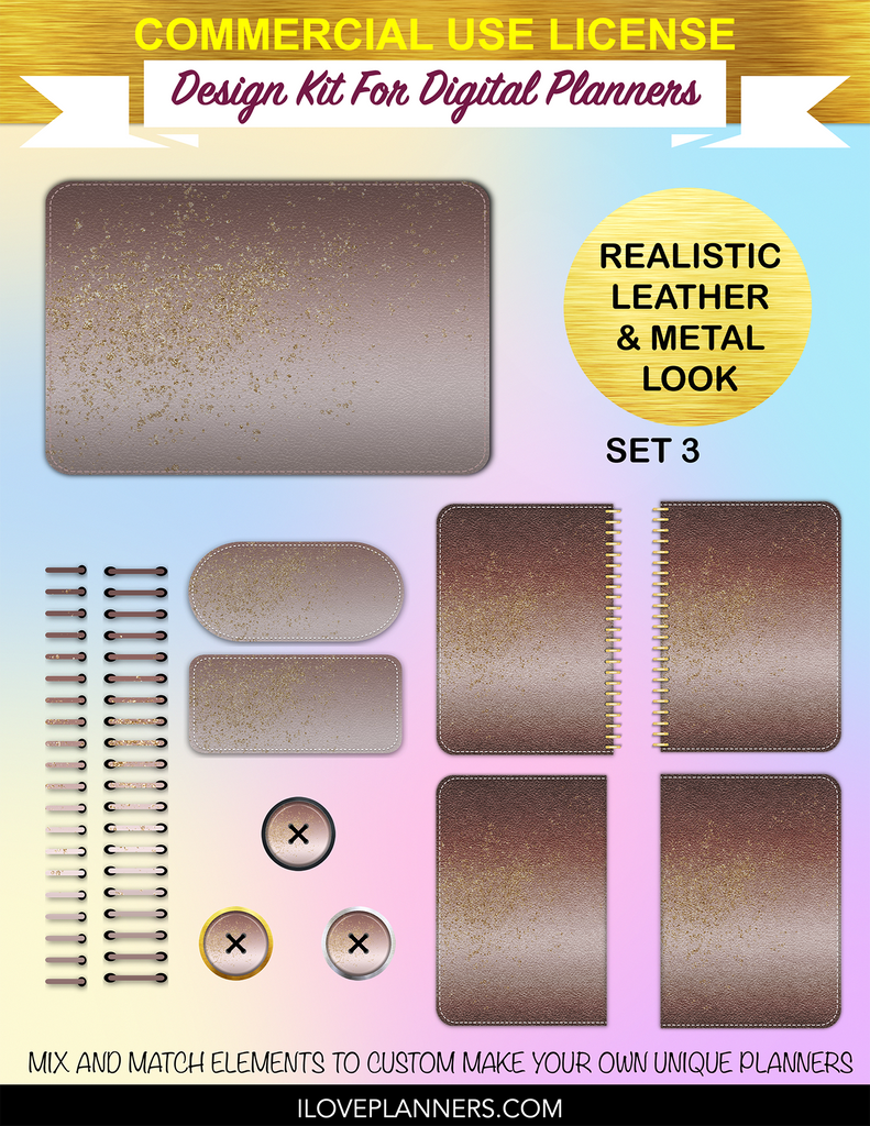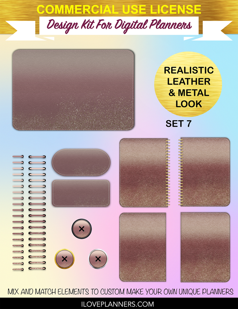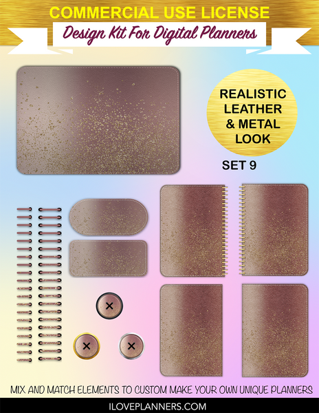 Rose and Gold Glitter Cover Kit for Digital Planners, Spirals, Coils, Customize Your Digital Planners, Commercial Use OK, Digital Planners, Digital Journals, Compatible for PC, Mac, Canva. #19