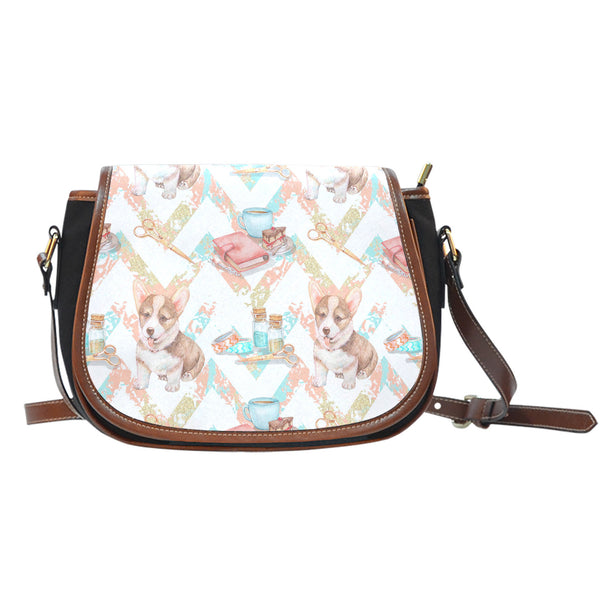 Crafter Fashion Themed Design A10 Crossbody Shoulder Canvas Leather Saddle Bag