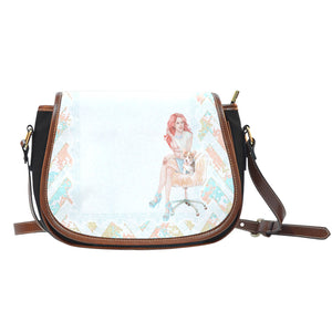 Crafter Fashion Themed Design A11 Crossbody Shoulder Canvas Leather Saddle Bag