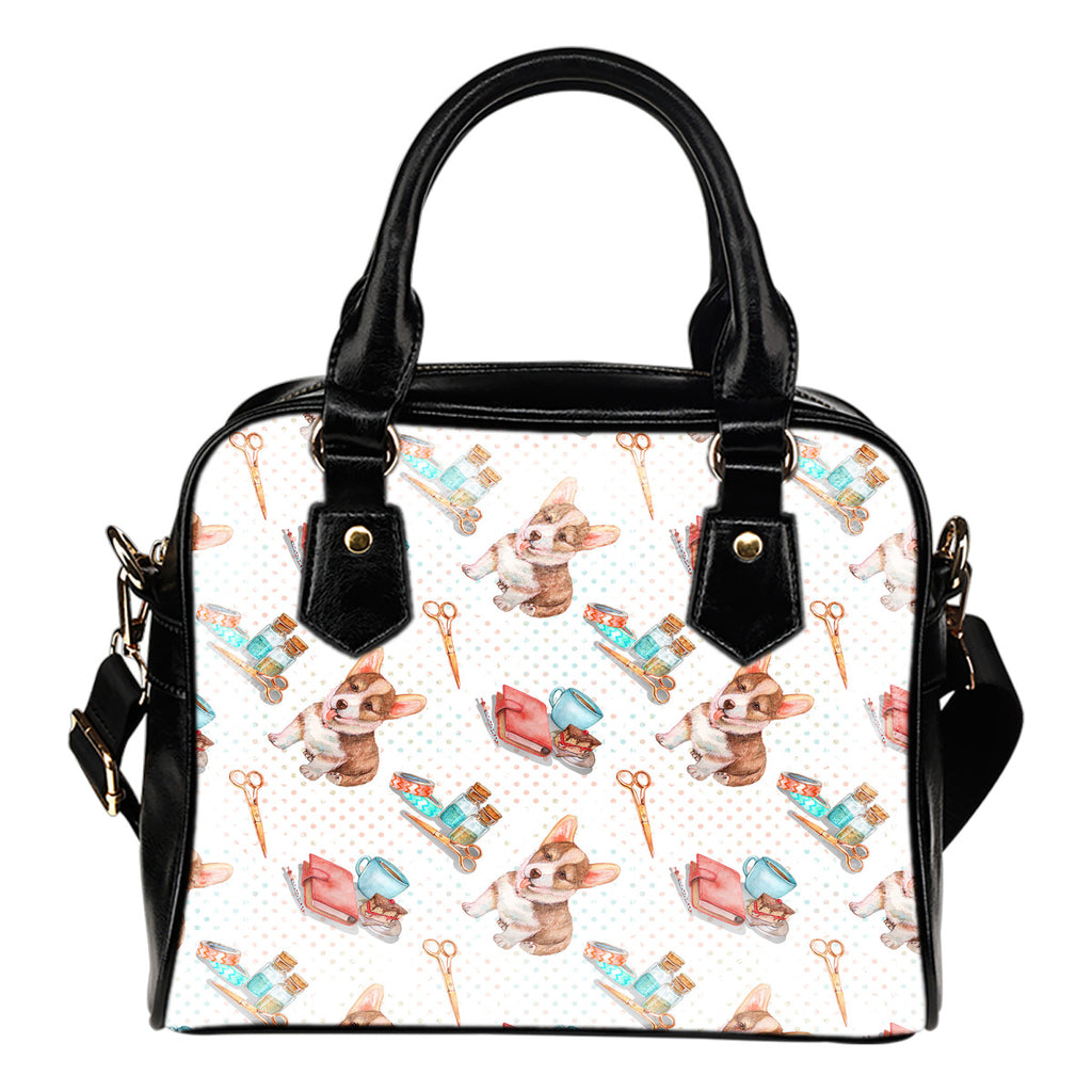 Crafter Fashion Themed Design B5 Women Fashion Shoulder Handbag Black Vegan Faux Leather