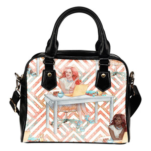 Crafter Fashion Themed Design B7 Women Fashion Shoulder Handbag Black Vegan Faux Leather