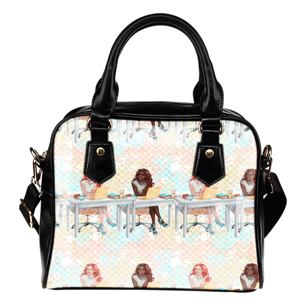 Crafter Fashion Themed Design B8 Women Fashion Shoulder Handbag Black Vegan Faux Leather
