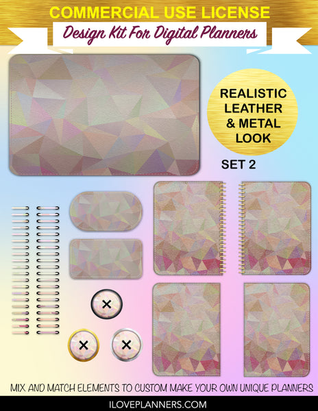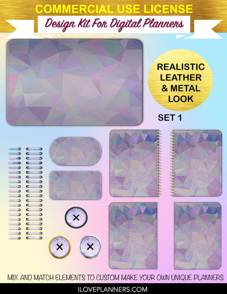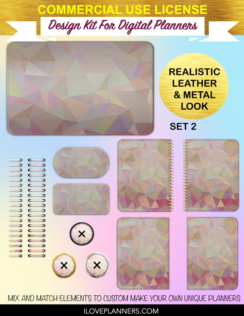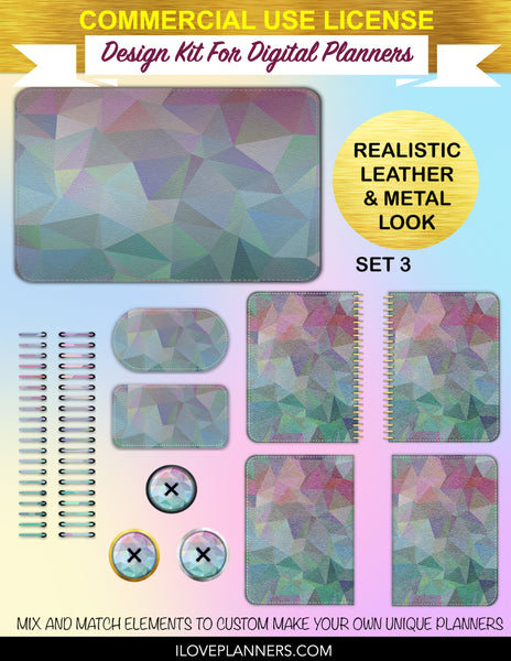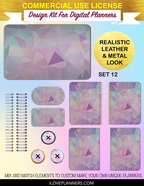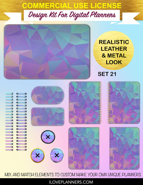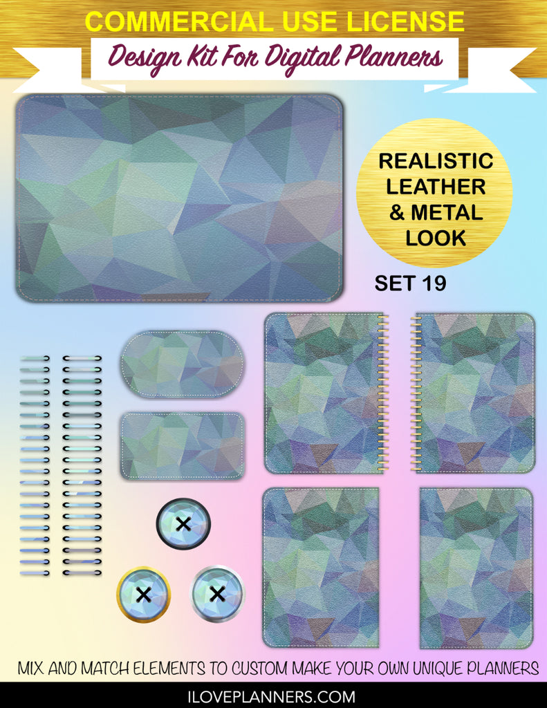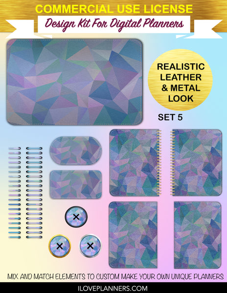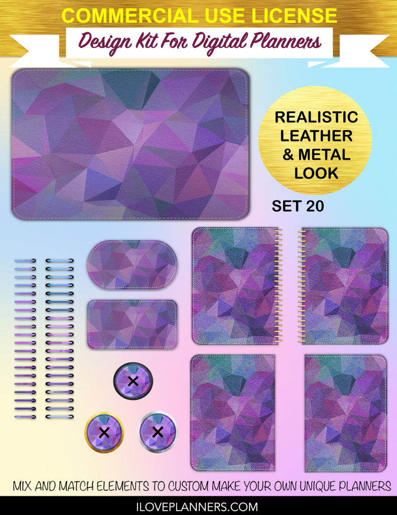 Crystal Low Poly for Digital Planners, Cover Kit, Spirals, Coils, Customize Your Digital Planners, Commercial Use OK, Digital Planners, Digital Journals, Compatible for PC, Mac, CANVA. #204