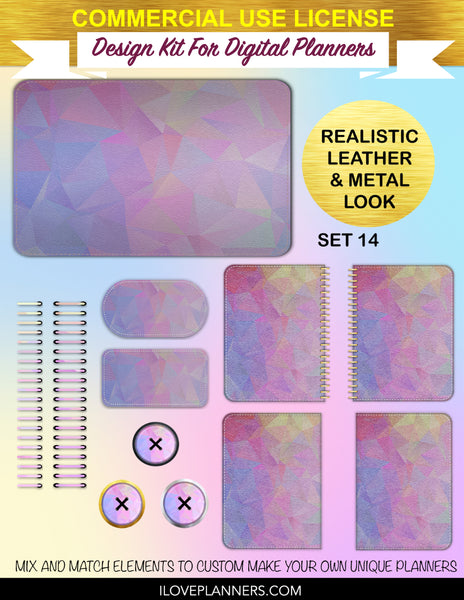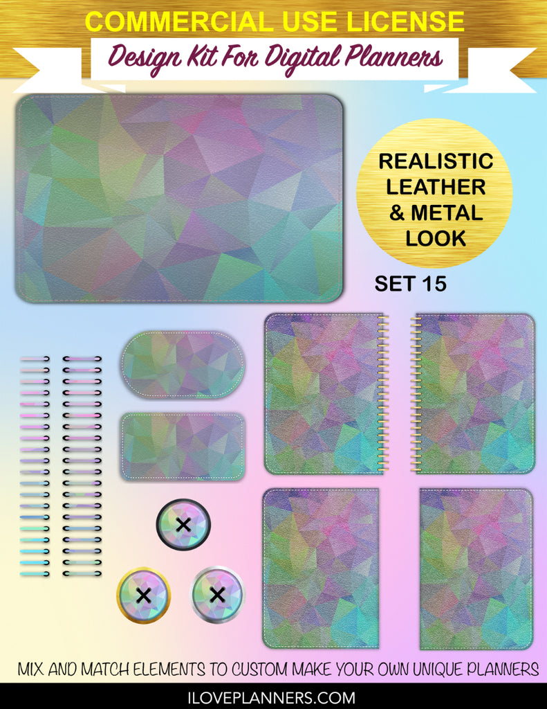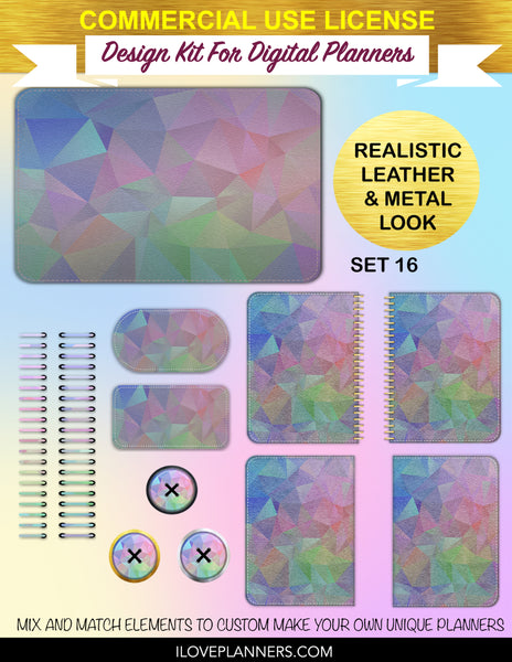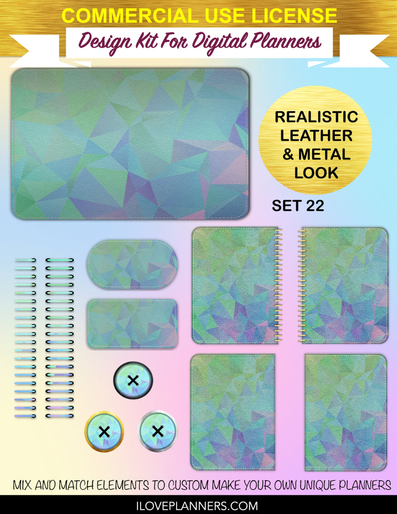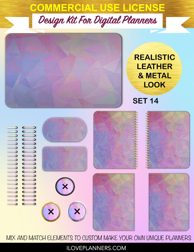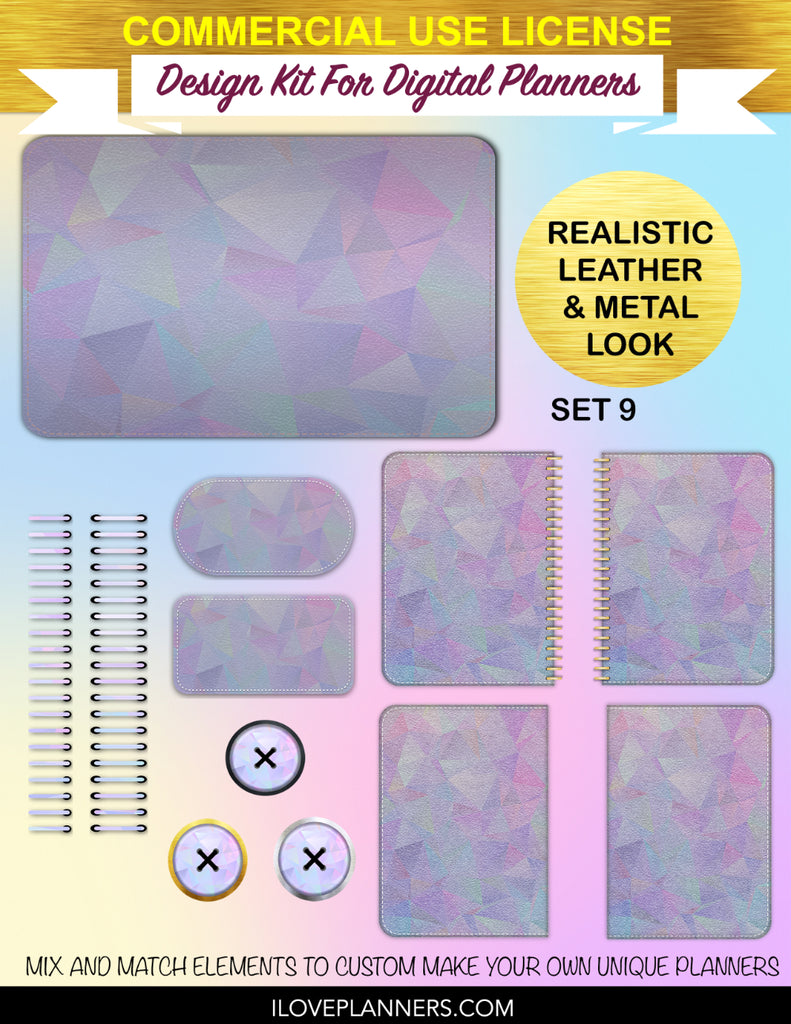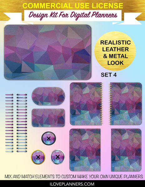 Crystal Low Poly for Digital Planners, Cover Kit, Spirals, Coils, Customize Your Digital Planners, Commercial Use OK, Digital Planners, Digital Journals, Compatible for PC, Mac, CANVA. #204