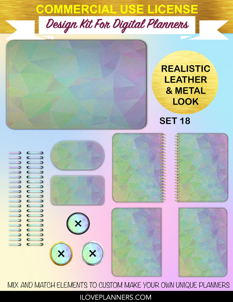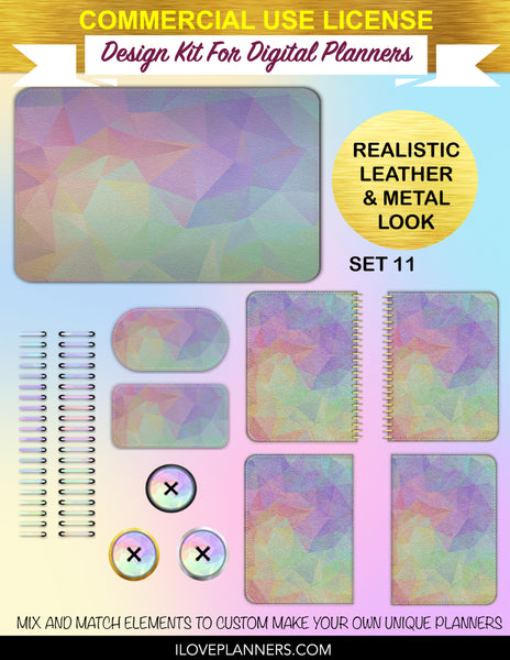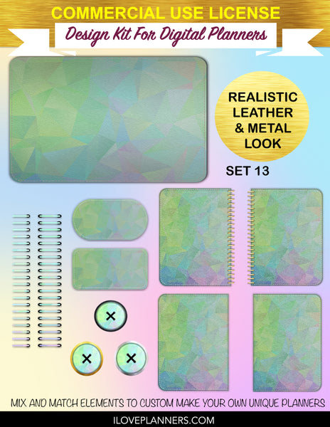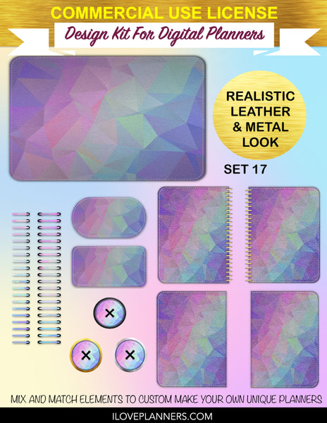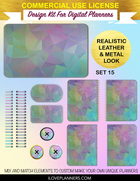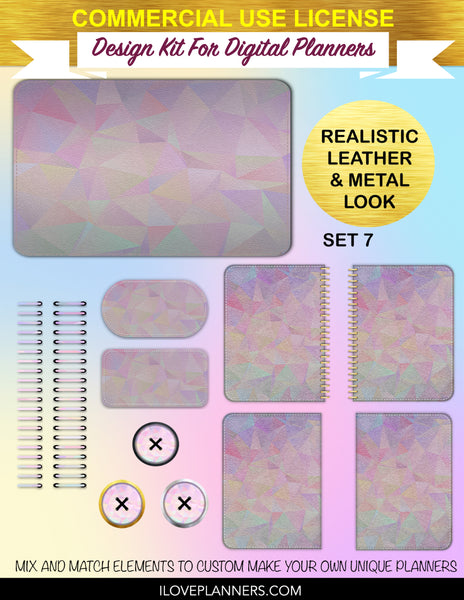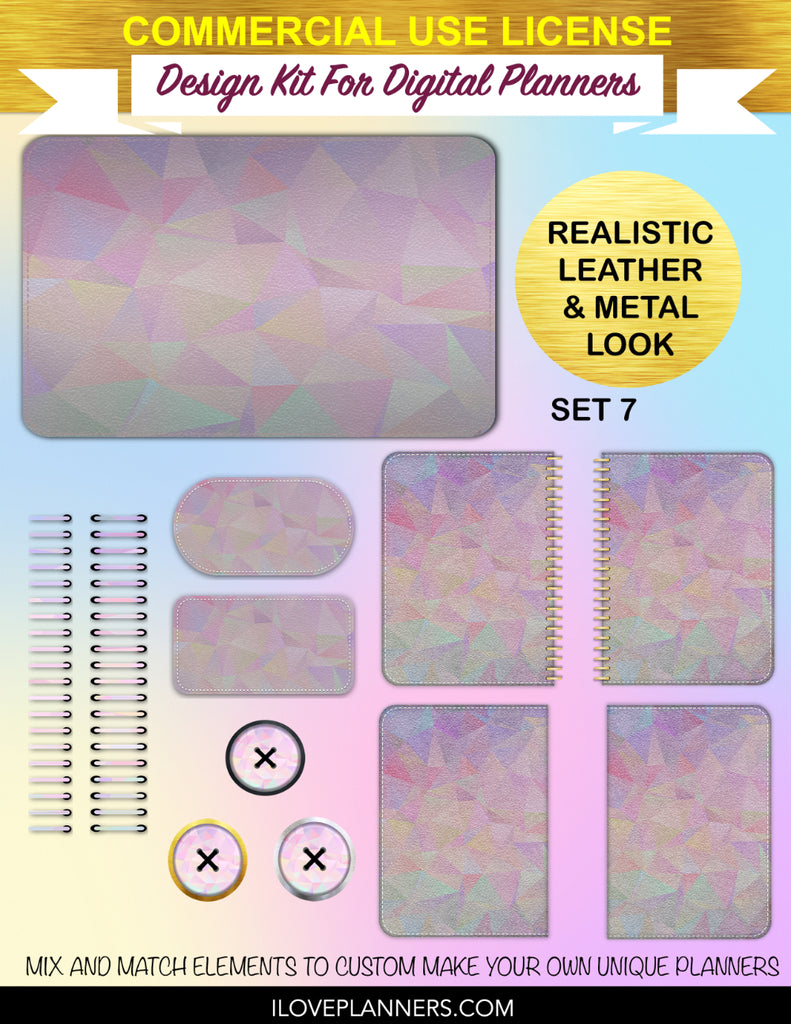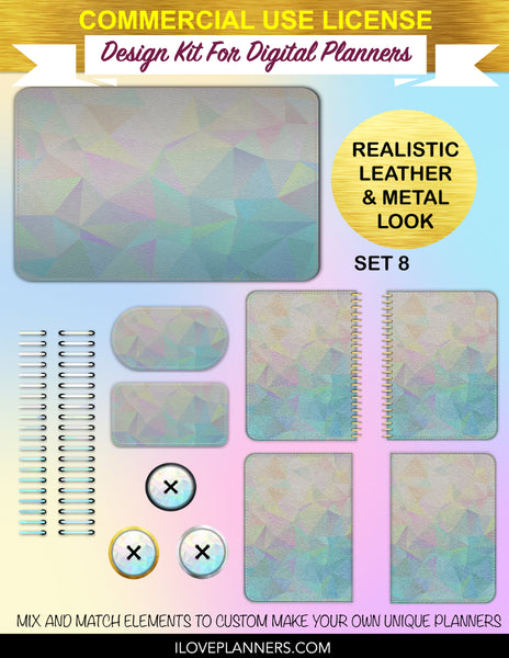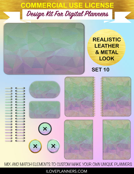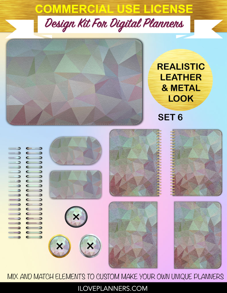 Crystal Low Poly for Digital Planners, Cover Kit, Spirals, Coils, Customize Your Digital Planners, Commercial Use OK, Digital Planners, Digital Journals, Compatible for PC, Mac, CANVA. #204