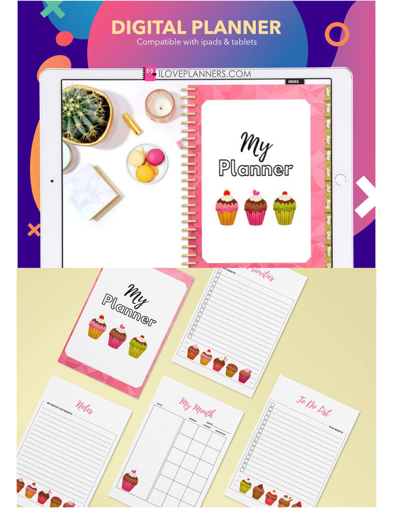 Cupcake Digital Planner and Journal/ GoodNotes, Xodo, Digital Journal, iPad Planner, tablet Planner Digital Planner Stickers