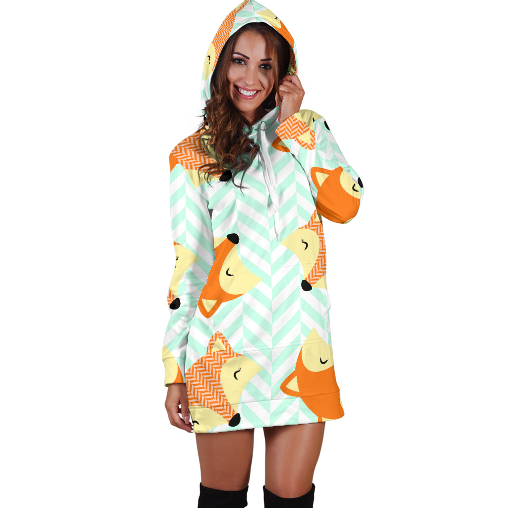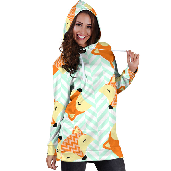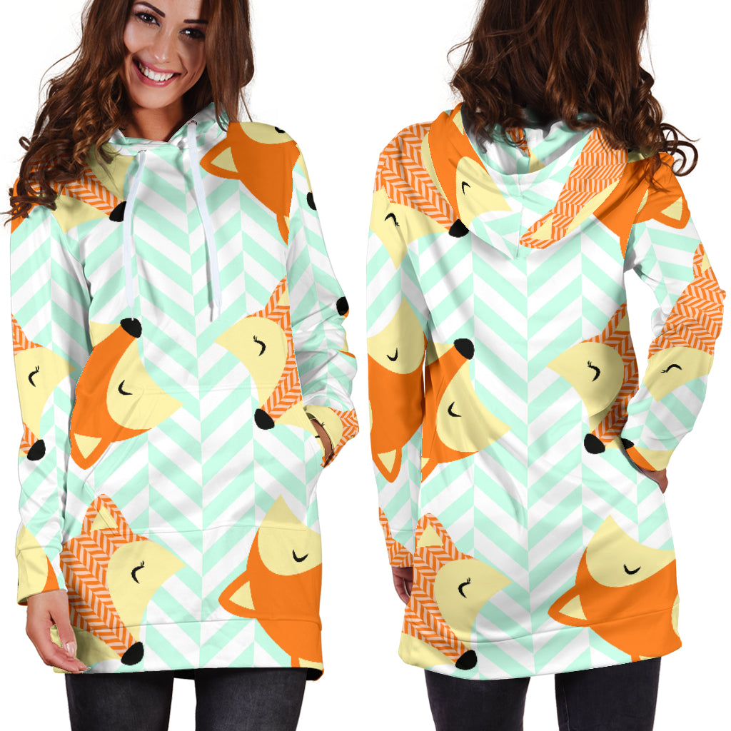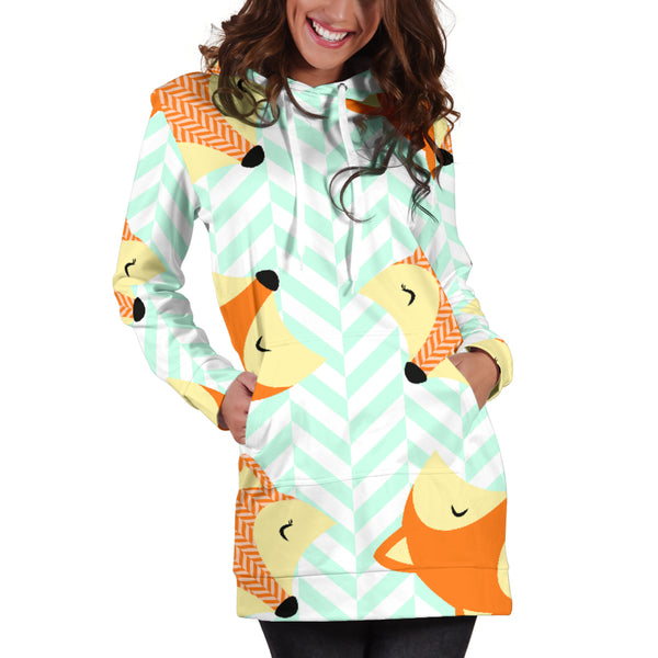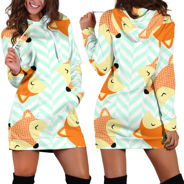 Studio11Couture Women Hoodie Dress Hooded Tunic Cute Green Zigzag Large Fox Athleisure Sweatshirt