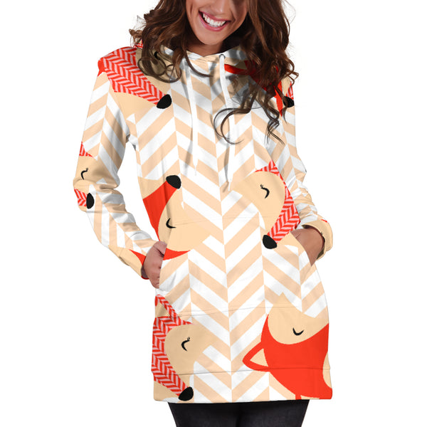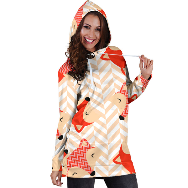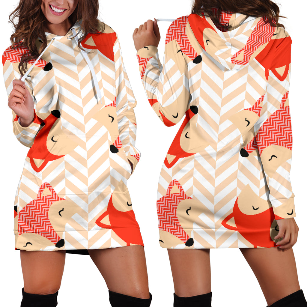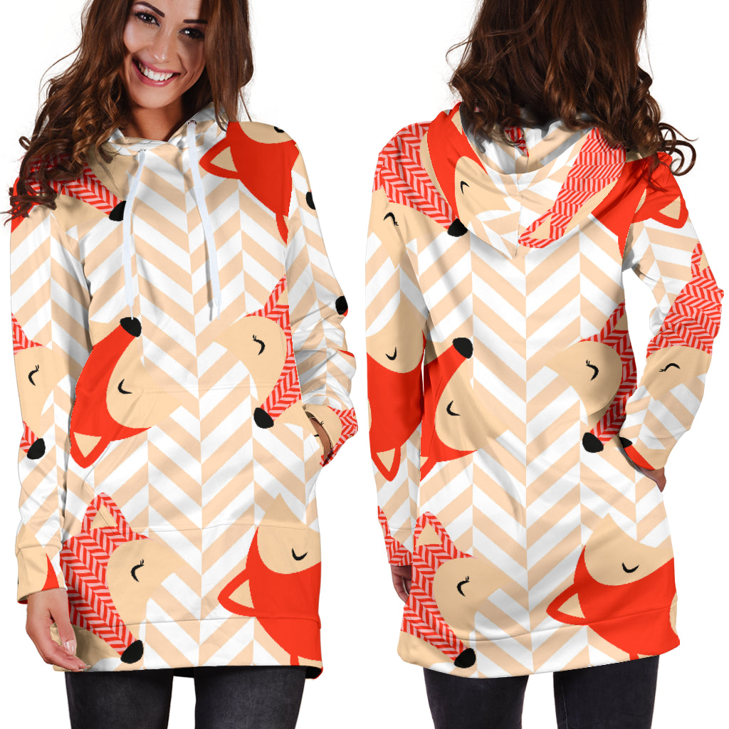 Studio11Couture Women Hoodie Dress Hooded Tunic Cute Red Zigzag Large Fox Athleisure Sweatshirt