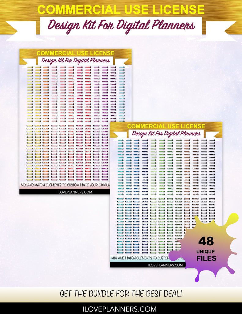 You DON'T have time to make them yourself and buying them from other sellers gets expensive. You are craft seller and lots of shops won't sell you small business license with their digital products. And when they do allow you to have commercial use they charge a lot of money for it. And then on top of that, puts all sorts of restrictions on how and what you can do! Making digital graphics yourself can take many hours, even days and weeks sometimes. And not everyone has experiences with digital designing. Even if you are a digital designer, it is still going to take you many hours to make these. You can hire someone to make these for you but how much money is that going to cost? The average graphics designer costs $50 - $100 an hour. There are 120 individual files with transparent background, you get 120 unique graphic elements in this bundle. You could easily spend over $500 or more just to have something like these made for you.
