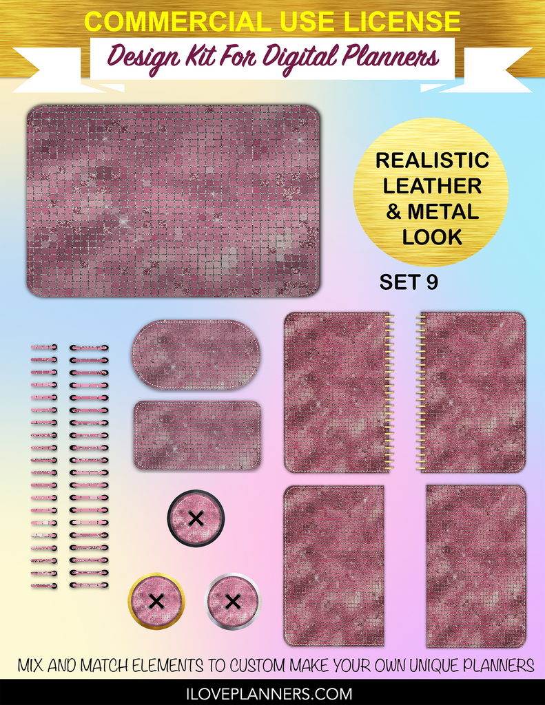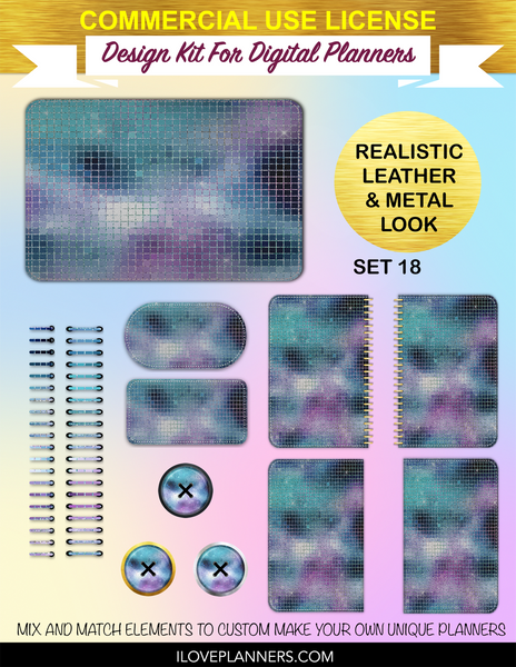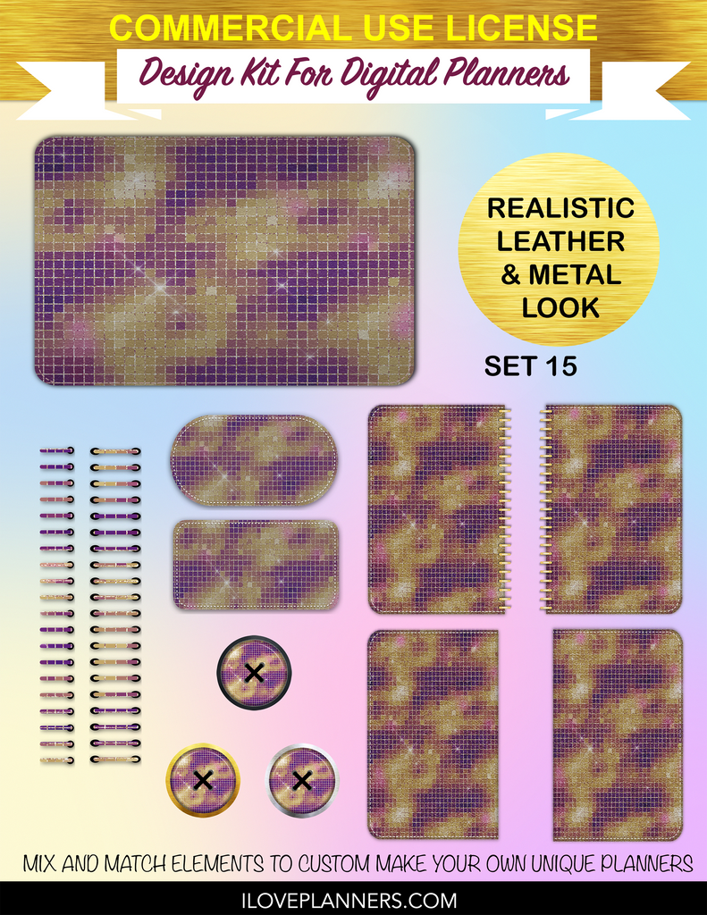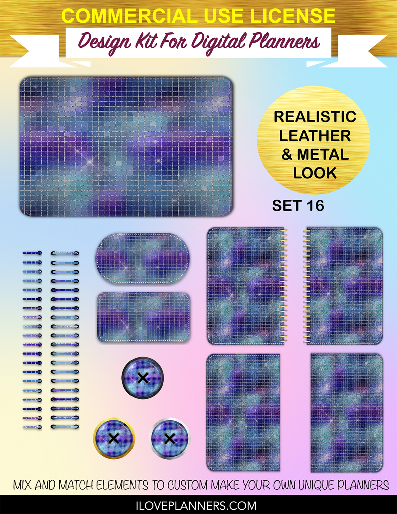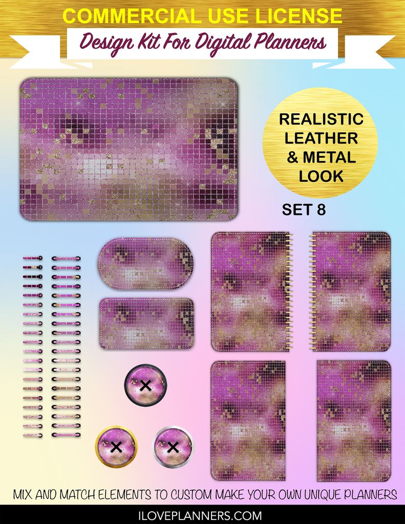 Disco Mirror Glam Digital Planners, Spirals, Coils, Customize Your Digital Planners, Commercial Use OK, Digital Planners, Digital Journals, Compatible for PC, Mac, CANVA. #72
