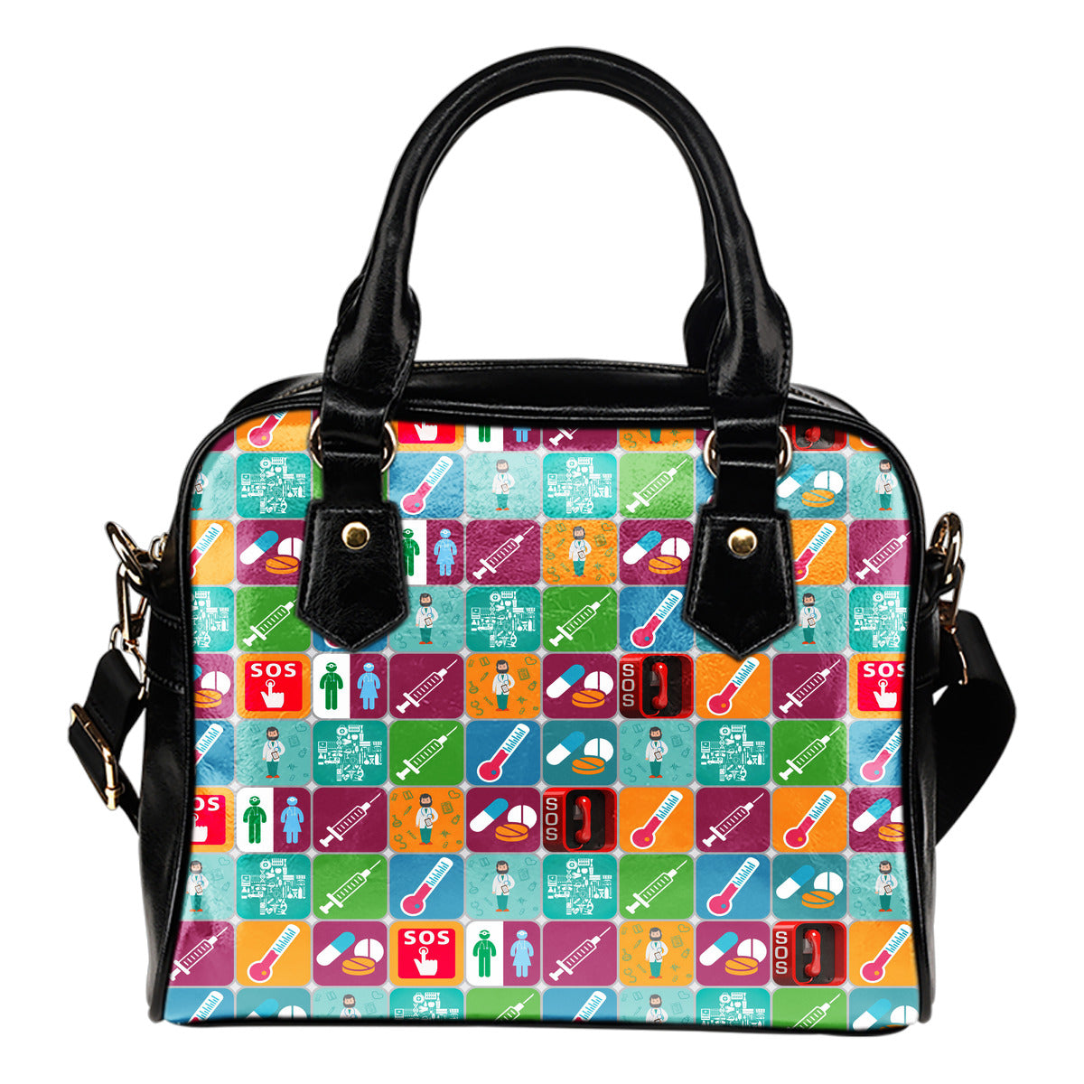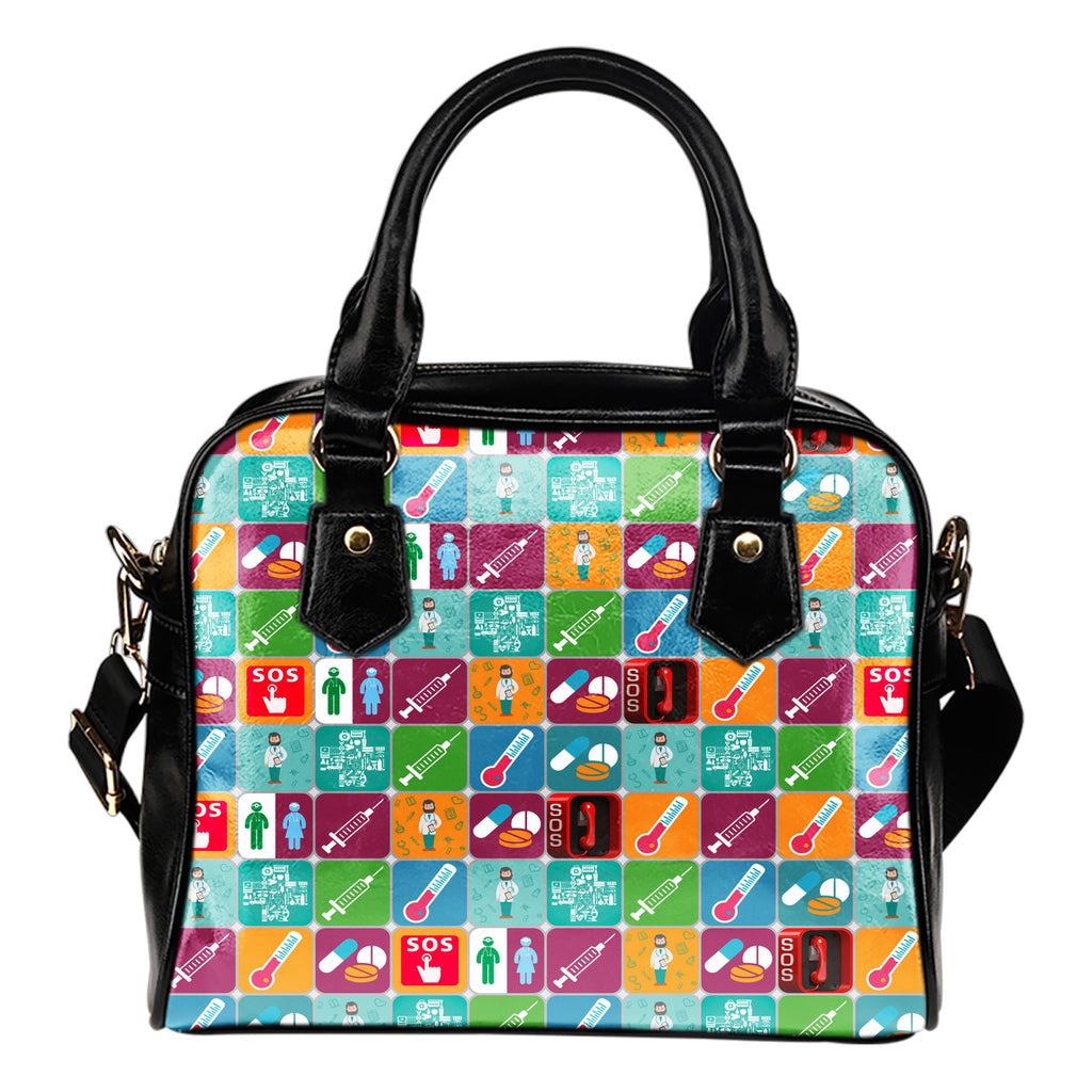 Doctor Themed Design #B11 Women Fashion Shoulder Handbag Black Vegan Faux Leather