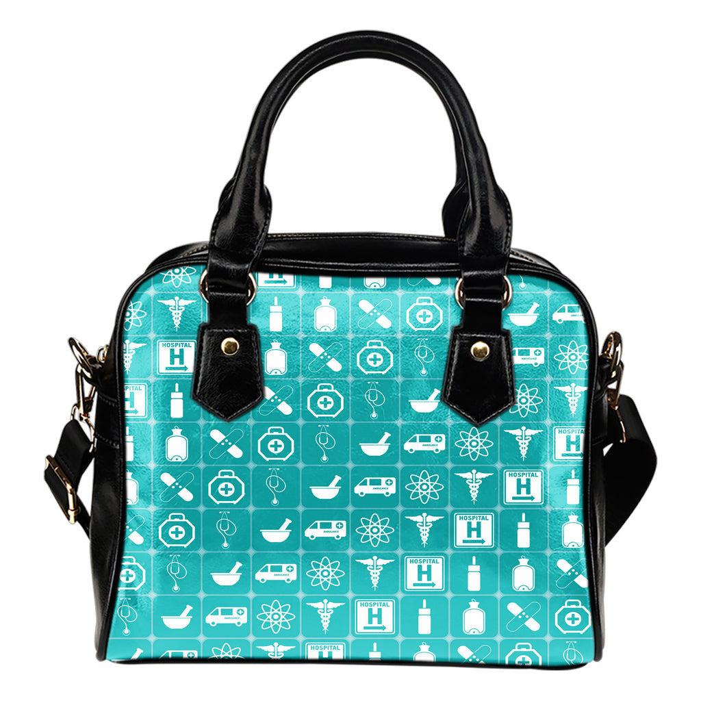 Doctor Themed Design #B4 Women Fashion Shoulder Handbag Black Vegan Faux Leather