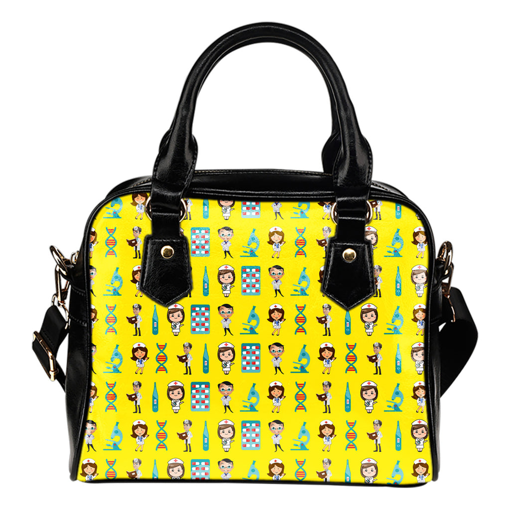 Doctor Themed Design #B5 Women Fashion Shoulder Handbag Black Vegan Faux Leather