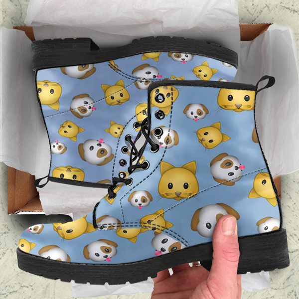 - Features eco-friendly leather with a double-sided print and rounded toe construction.