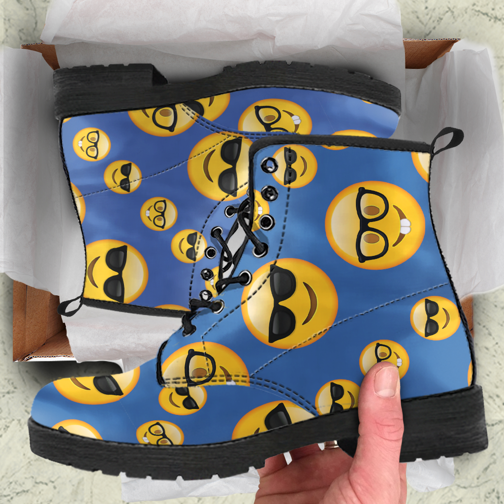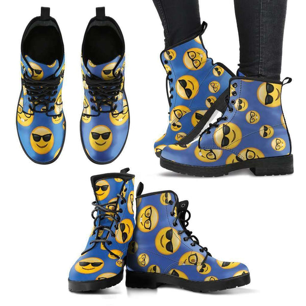 Emoji Glasses Womens Leather Boots