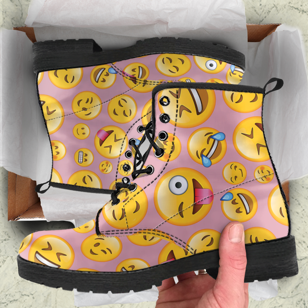 - Features eco-friendly leather with a double-sided print and rounded toe construction.
