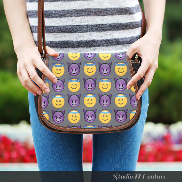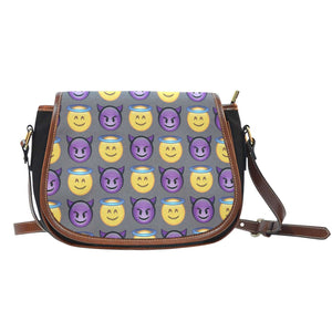 Emojis Good vs Bad Crossbody Shoulder Canvas Leather Saddle Bag