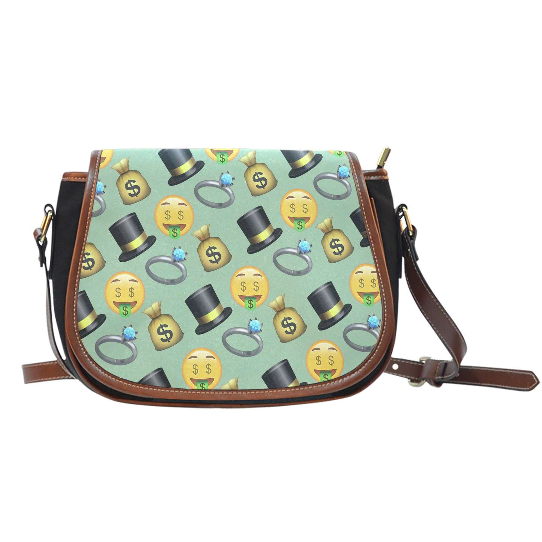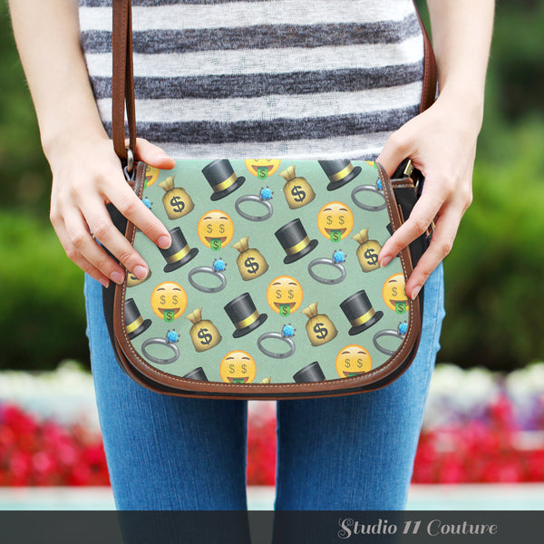Emojis Money Crossbody Shoulder Canvas Leather Saddle Bag