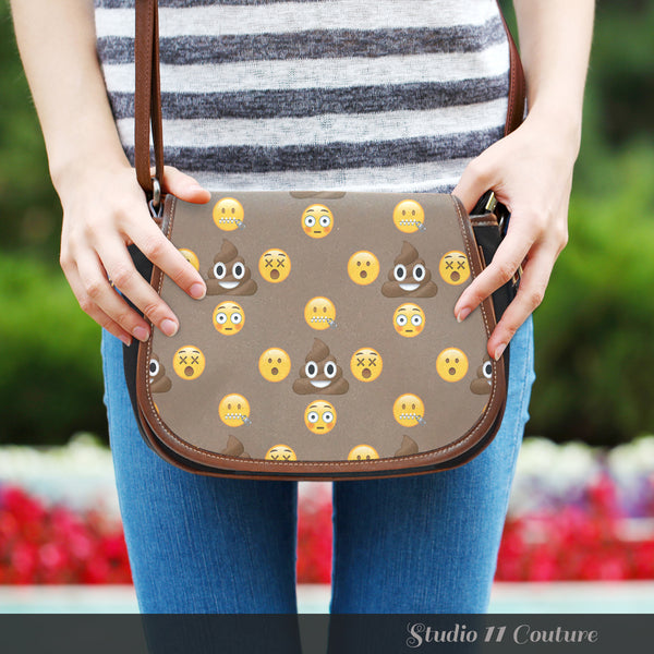 Emojis Poo Crossbody Shoulder Canvas Leather Saddle Bag