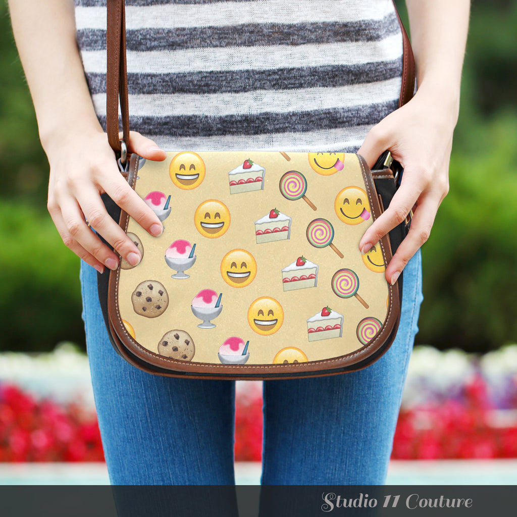 Emojis Sweet Crossbody Shoulder Canvas Leather Saddle Bag