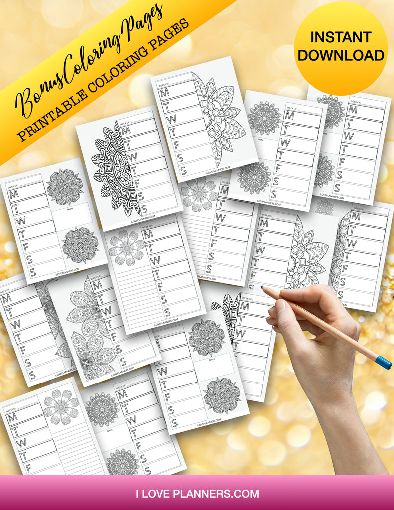 2. Includes Coloring pages, Coloring Planner pages, and Bonus Planner pages.