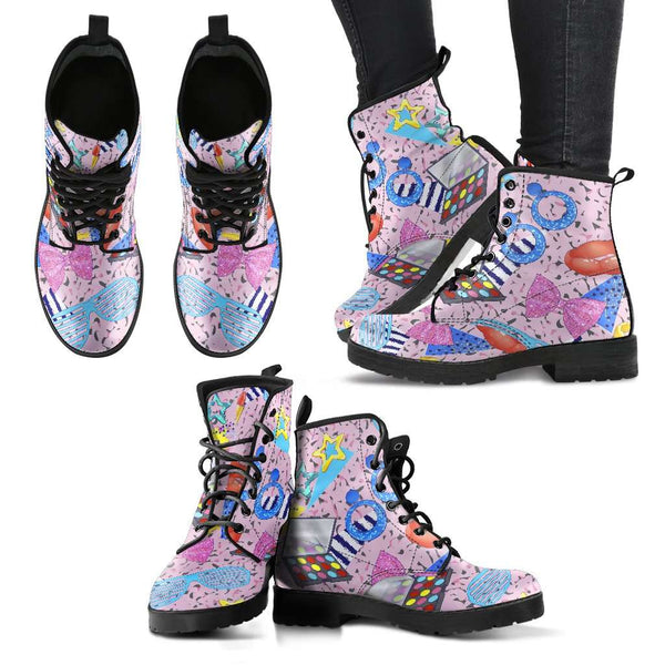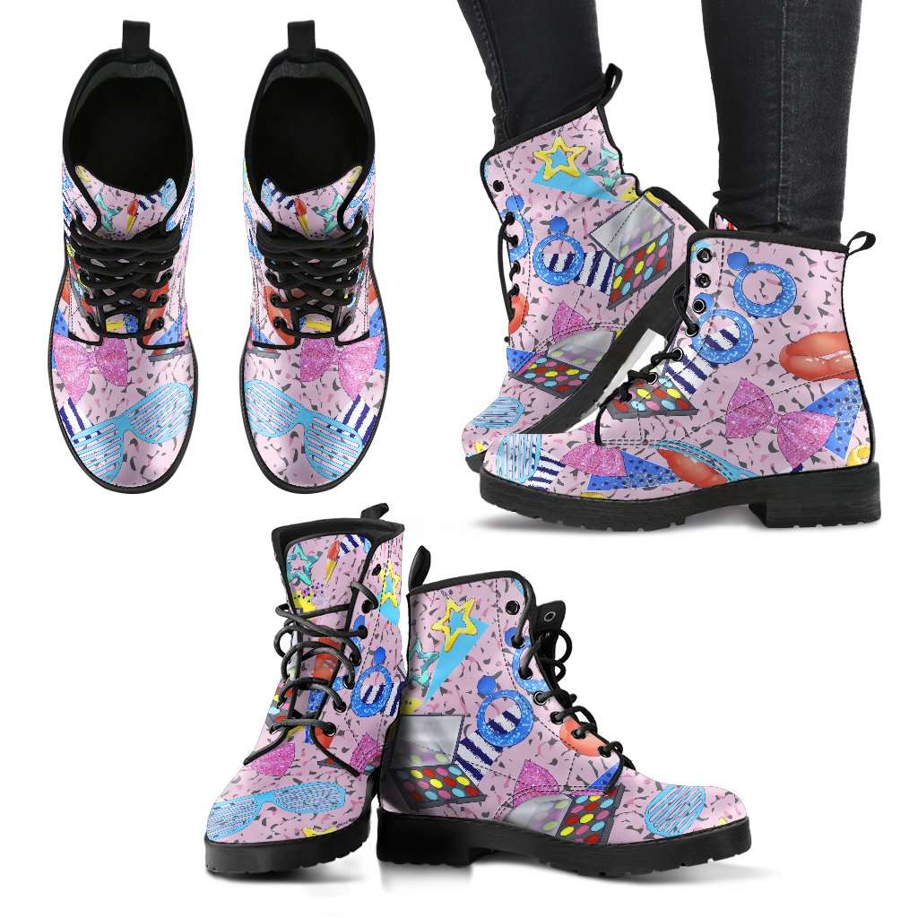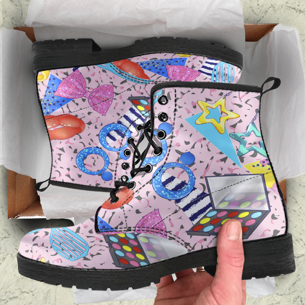 - Features eco-friendly leather with a double-sided print and rounded toe construction.