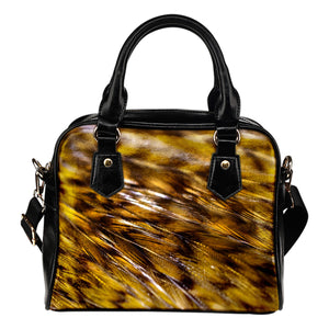 Feather Themed Design #B04 Women Fashion Shoulder Handbag Black Vegan Faux Leather