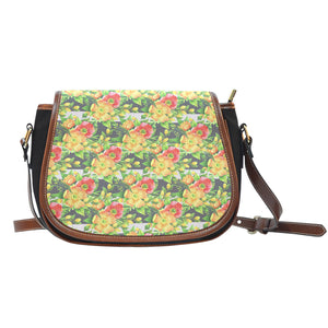 Floral Spring (C2) Crossbody Shoulder Canvas Leather Saddle Bag