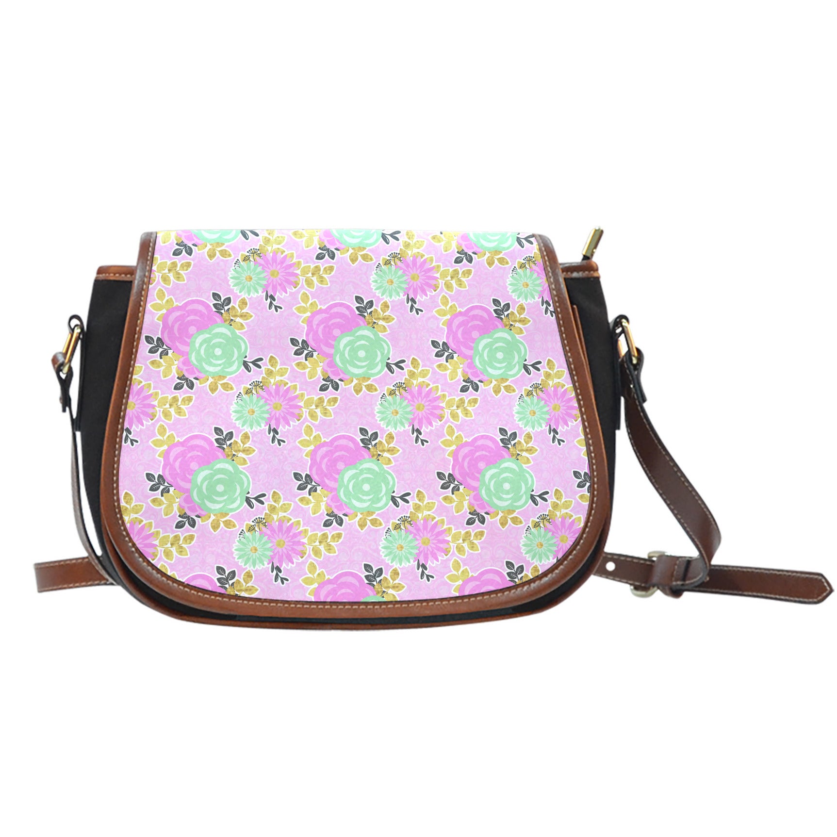 Floral Spring (D5) Crossbody Shoulder Canvas Leather Saddle Bag