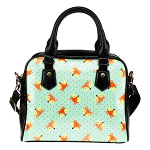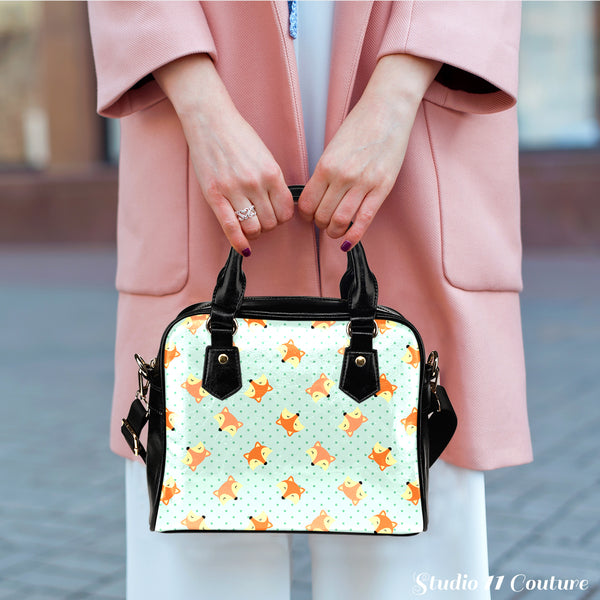 Foxes 2 (A5) Theme Women Fashion Shoulder Handbag Black Vegan Faux Leather