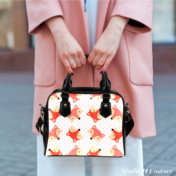 Foxes 3 (A2) Theme Women Fashion Shoulder Handbag Black Vegan Faux Leather