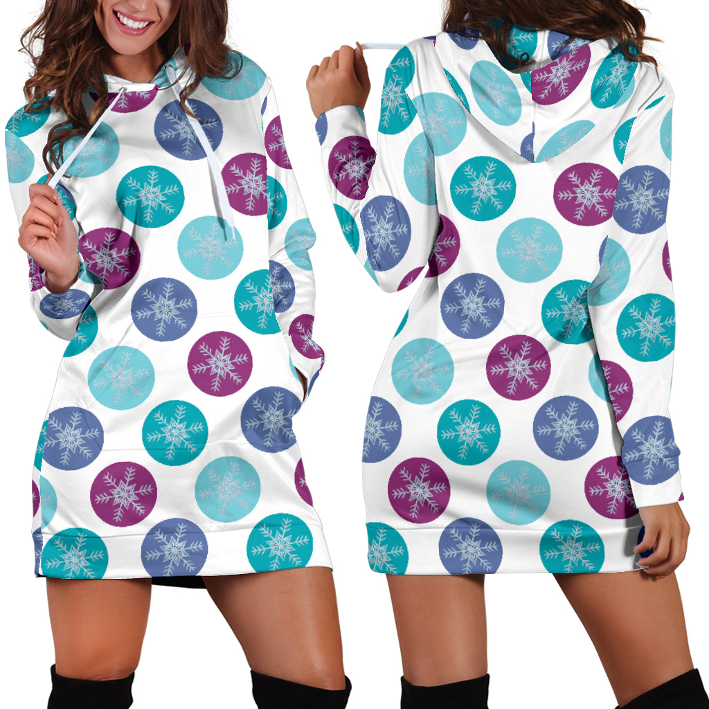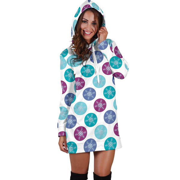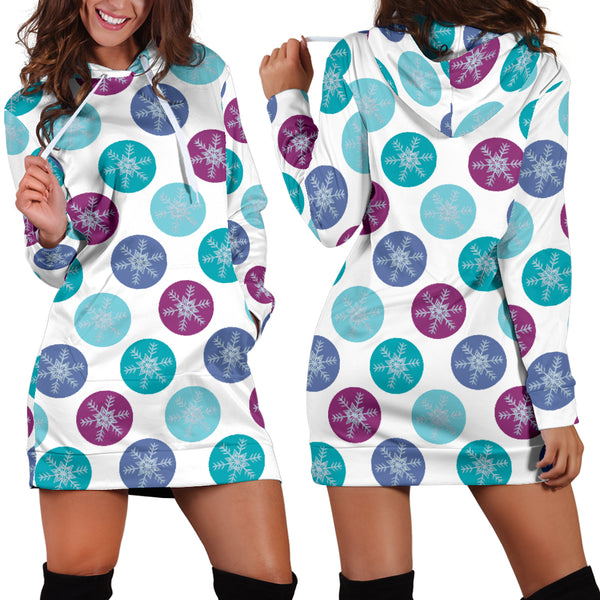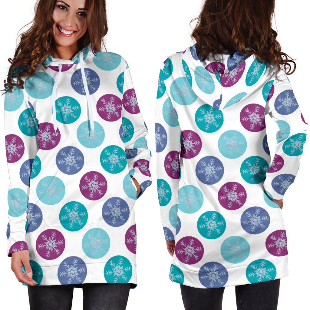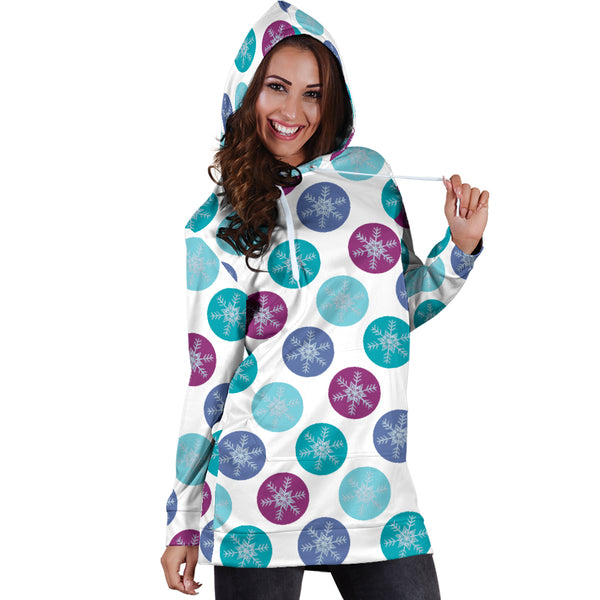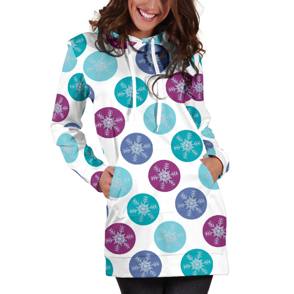 Studio11Couture Women Hoodie Dress Hooded Tunic Frozen Snow Flakes Athleisure Sweatshirt