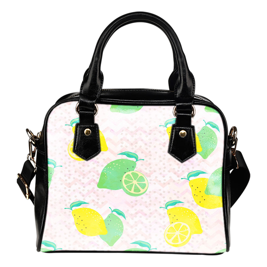 Fruits Themed Design B12 Women Fashion Shoulder Handbag Black Vegan Faux Leather