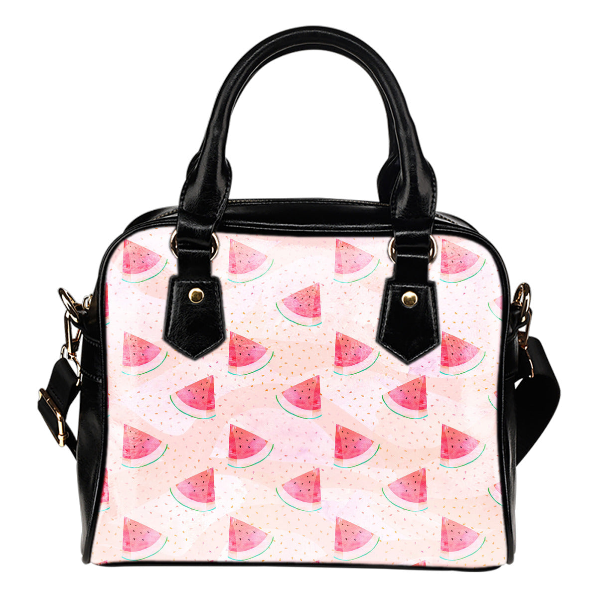 Fruits Themed Design B14 Women Fashion Shoulder Handbag Black Vegan Faux Leather