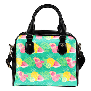 Fruits Themed Design B3 Women Fashion Shoulder Handbag Black Vegan Faux Leather