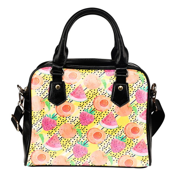 Fruits Themed Design B9 Women Fashion Shoulder Handbag Black Vegan Faux Leather
