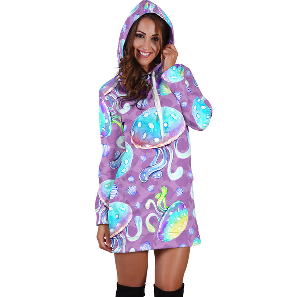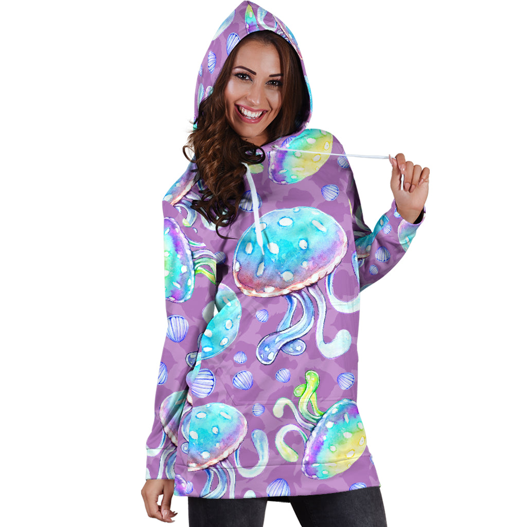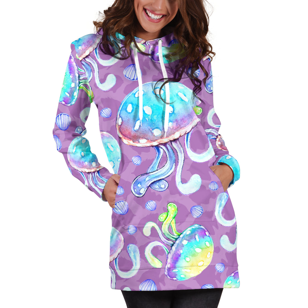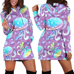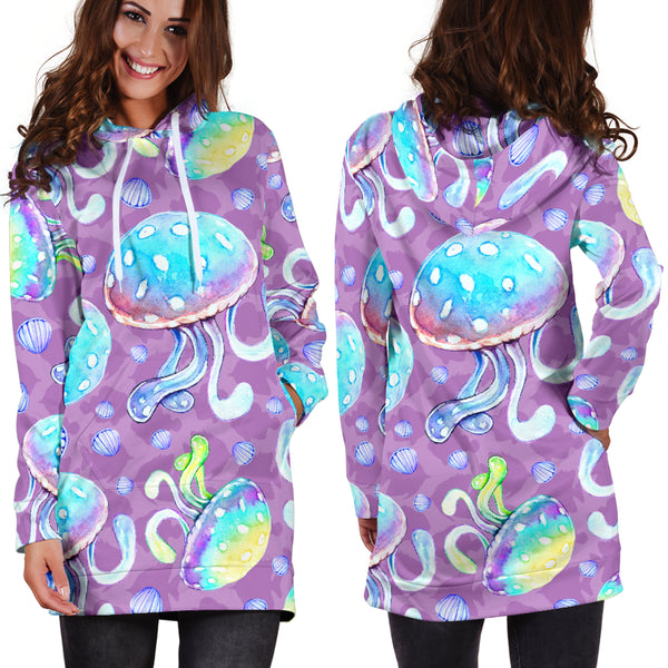 Studio11Couture Women Hoodie Dress Hooded Tunic Full Of Jellyfish Athleisure Sweatshirt
