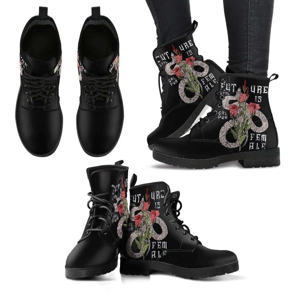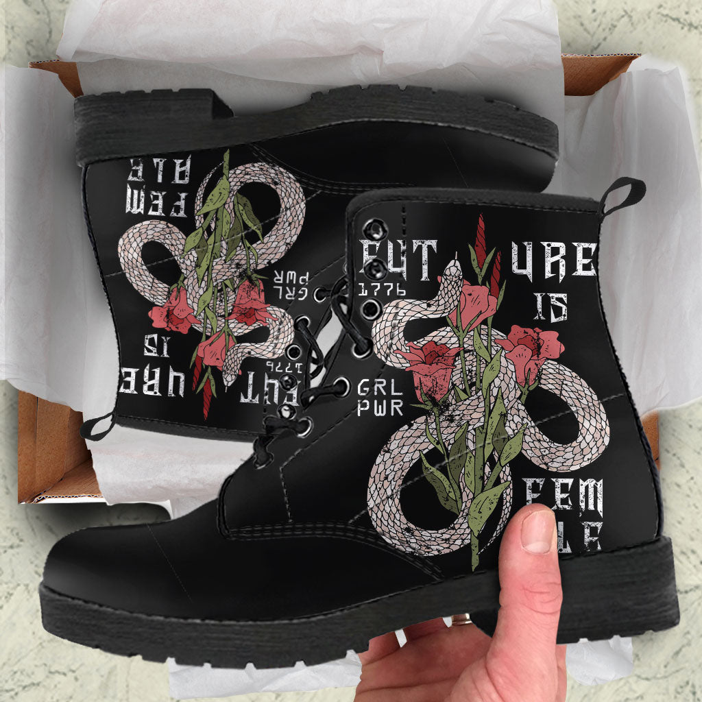 - Features eco-friendly leather with a double-sided print and rounded toe construction.